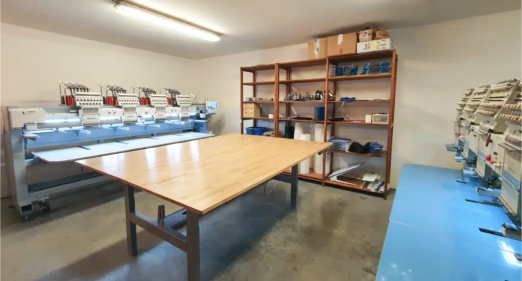 Grâce à un parc machines complet — broderie professionnelle, découpe, impression et marquage textile — nous pouvons réaliser aussi bien de petites séries personnalisées que des productions plus importantes, tout en garantissant la même exigence de qualité.